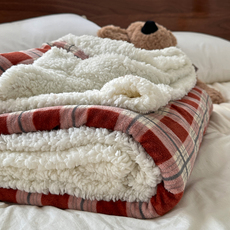 红格子牛奶绒羊羔绒双层毛毯 冬季加厚盖毯办公室午睡午休沙发毯