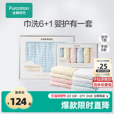全棉时代儿童浴巾手帕套装纱布婴儿宝宝初生洗澡包巾