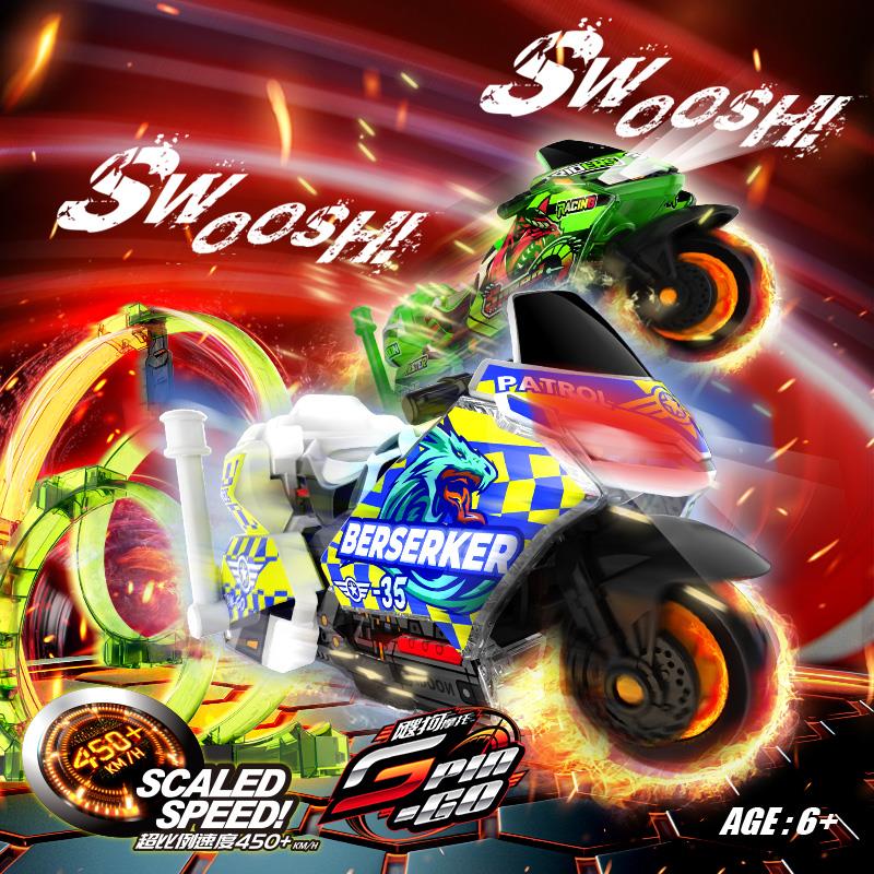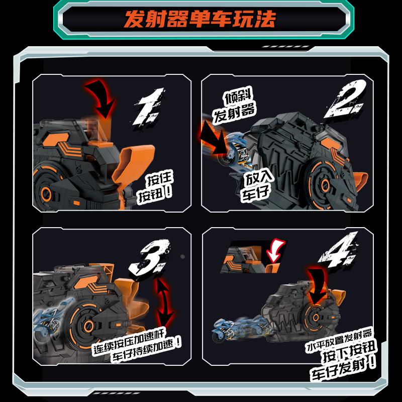 2025飕狗摩托车玩具旋风连发加速发射器轨道赛道拼装飞车套装正版
