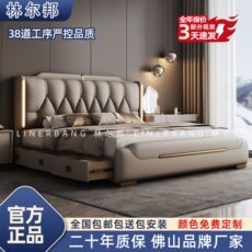 左已现代简约网红床欧式双人泡芙主卧大床储物卧室成套家具