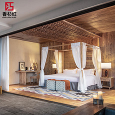 新中式原木风酒店民宿宾馆公寓标间客房成套家具双人床厢固装家具