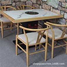 商用火锅店桌椅餐厅饭店实木包边大理石主题餐饮店成套餐桌椅家具