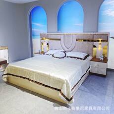 酒店宾馆家具标间软包床头民宿成套客房快捷旅馆专用双人床