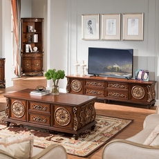 欧式茶几实木电视柜美n式雕花地柜复古描金客厅成套家具1.4 米茶