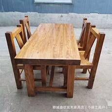灿洋现代简约实木餐桌椅组合长方形做旧民宿家用饭店餐厅成套桌椅