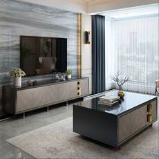 意式轻奢高端电视柜高低组合茶几客厅成套家具别墅大户型边几定制