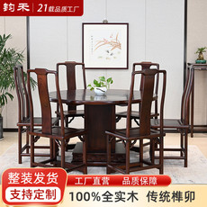 金鼎红木【梅花鼓台】血檀餐桌凳组合餐厅成套家具仿古中式实木