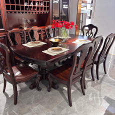 粤港家具 欧式实木餐桌餐厅成套家具组合美式圆桌饭桌组合