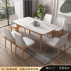 轻奢岩板餐桌意式现代简约长餐台餐椅组合北欧餐厅成套家具