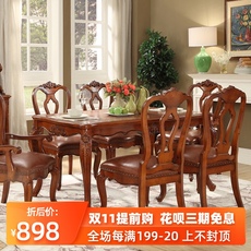 粤港家具 e 欧式实木餐桌餐厅成套家具组合美式圆桌饭桌组合
