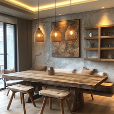 民宿会所长方形实木餐桌+餐椅 餐厅成套家具可订做侘寂风实木餐桌
