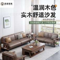 合聚黑胡桃木实木沙发组合客厅家用大小户型简约现代成套家具沙发