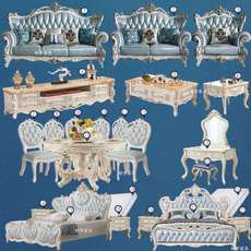 地中海风格客厅成套家具实木高低酒柜组装美式茶几电视柜组合套装