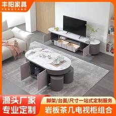 茶几轻奢高级感岩板电视柜功夫带矮凳子电磁炉客厅成套家具多功能