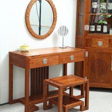 中式梳妆台凳镜子组合刺猬紫檀榆木家具卧室家具成套梳妆桌化妆镜