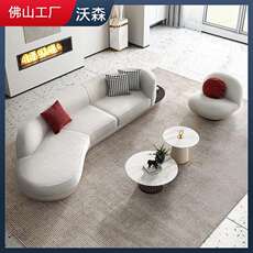 北欧轻奢客厅成套家具设计师款创意弧形扁豆沙发三人位月亮沙发