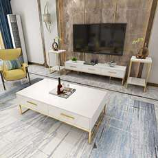 茶几电视柜组合家用客厅整装软包带抽屉小户型玻璃岩板面成套家具