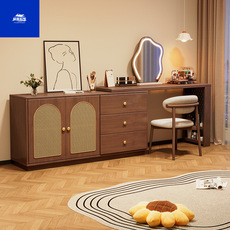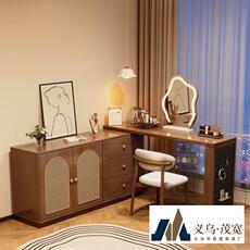 书桌柜子一体中古风卧室成套家具小户型可伸缩梳妆台凳转角斗柜