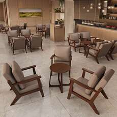 实木餐厅沙发创意家具咖啡馆艺术感简约酒吧舒适优雅成套桌椅组合