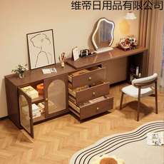 书桌柜子一体中古风卧室成套家具小户型可伸缩梳妆台凳转角斗柜