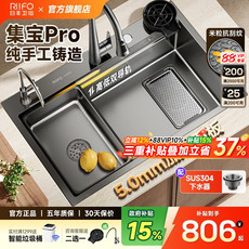 九牧卫浴厨房大单槽瀑布水槽纳米压纹洗菜盆手工台下盆魔法师