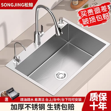 厨房不锈钢洗菜盆水槽单槽双槽家用厨房手工加厚洗碗盆菜池台上下