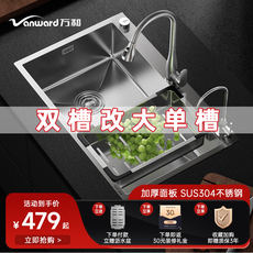 万和水槽大单槽厨房304不锈钢5MM纳米蜂窝压纹左置下水洗碗洗菜盆