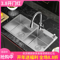 不锈钢加厚手工水槽双槽厨房洗菜盆家用洗碗槽水池套餐台上台下盆