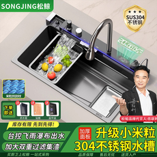 松鲸 水槽304不锈钢原色大单槽洗菜盆厨房纳米加厚洗碗池米粒压纹