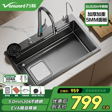 万和水槽加厚5MM米粒压纹厨房单槽SUS304不锈钢数显洗菜盆洗碗池