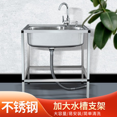 厨房不锈钢水槽简易带落地支架单槽洗碗池洗菜盆水盆一体操作台面