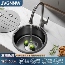 304不锈钢圆形小水槽压纹隐形带盖板中岛吧台隐藏式西厨房洗菜盆