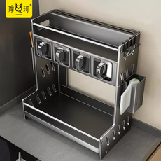 厨房调味料罐置物架免安装台面一体不锈钢多功能油盐酱醋收纳架子