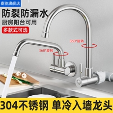 可旋转304不锈钢厨房水龙头 单冷入墙式洗菜盆水槽阳台洗衣池龙头