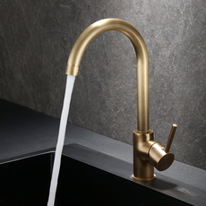 全铜仿古厨房水龙头冷热洗手盆洗菜盆水槽抽拉式旋转家用复古简约