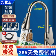 九牧304不锈钢厨房龙头冷热水洗菜盆防溅水槽家用旋转洗碗池龙头