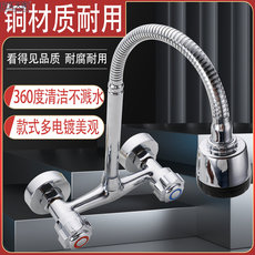 精铜厨房水龙头冷热洗菜盆不锈钢水槽防溅洗手池洗碗单冷旋转家用