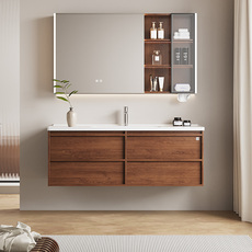 中古风浴室柜陶瓷一体盆智能洗漱台洗手池台盆洗脸盆柜组合挂墙式
