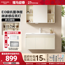 法恩莎奶油风智能美妆镜陶瓷一体盆卫生间洗手盆洗漱台浴室柜组合