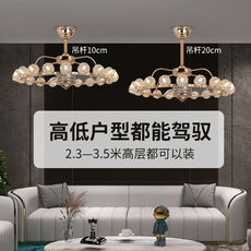 水晶风扇餐厅吊灯新款静音后现代豪华网红轻奢客厅灯家用中山灯具