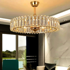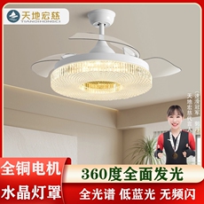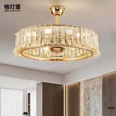 现代轻奢水晶客厅餐厅风扇灯吊灯一体家用卧室隐形带电风扇吊扇灯