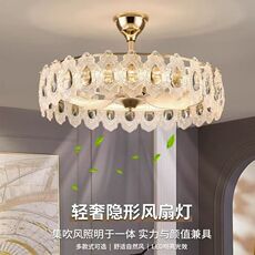 水晶吸顶隐形风扇灯2025新款奶油卧室吊扇灯具客厅吊灯风现代餐厅