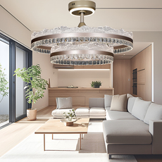 新款水晶隐形风扇吊灯三色变光全铜电机智能语音吊扇灯