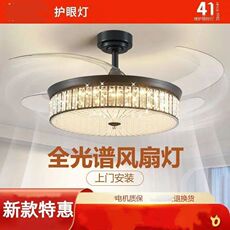 新款餐厅隐形风扇吊灯三色变光智能语音全铜变频静音电机加水晶