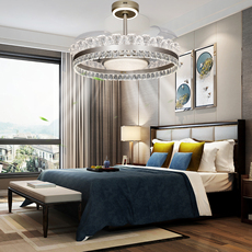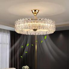 新款轻奢水晶风扇吊灯餐厅卧室智能语音控制铜电机六档变频