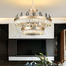 美式复古RH水晶吊灯创意简约北欧圆形客厅餐厅别墅长形双层水晶灯