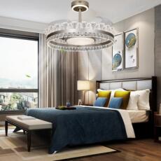 轻奢水晶静音风扇吊灯餐厅客厅欧风扇灯家用卧室吊扇灯式简约隐形