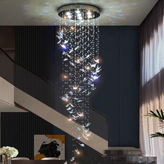 别墅复式楼梯炫彩蝴蝶水晶吊灯挑高中空公寓定制灯具酒店大堂吊灯