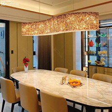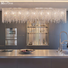 意式轻奢餐厅主吊灯一字长方形饭厅吧台岛台西厨长条进口水晶灯饰