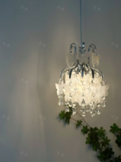 法式田园水晶花瓣吊灯现代轻奢卧室床头小吊灯高端装饰吧台吊线灯